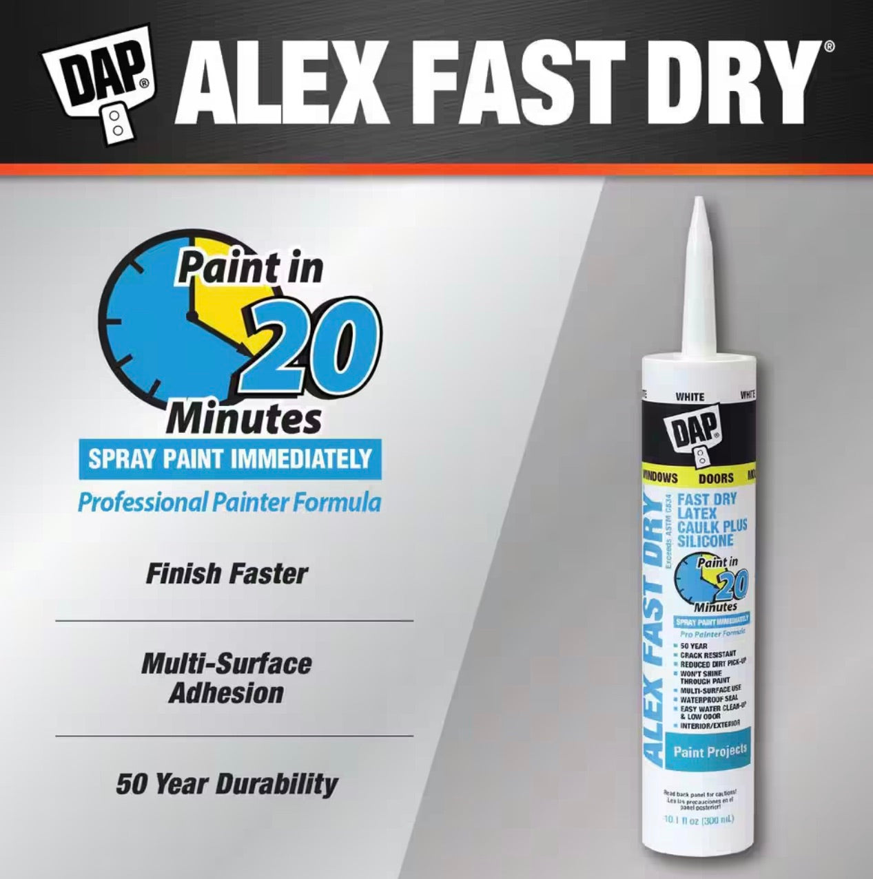 DAP Alex Fast Dry Acrylic Latex Caulk Plus Silicone is specifically formulated to meet the demanding needs of Professional Painters and deliver outstanding paint finish results.