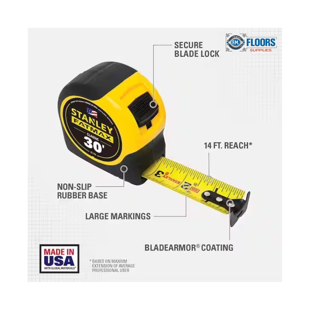 With 14 ft. of reach* and a durable, high-impact case, this 30 ft. FATMAX Classic Tape Measure will fit your toolbelt, your hand, and the job.